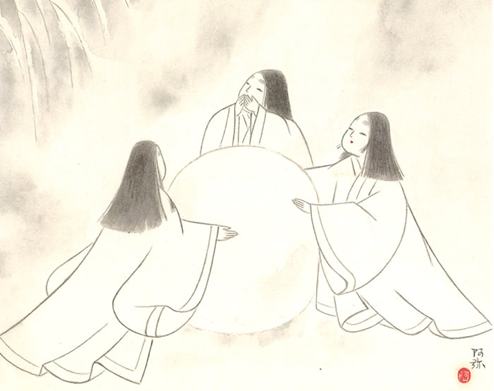 源氏の殿の思い人・朝顔の姫君は、父宮を亡くされてから、斎院(さいいん)を退き、今はお里帰りしています。 少年の日からくすぶり続けた恋心を再燃させる源氏の殿ですが、聡明な姫君は、源氏の殿を情(つれ)なく拒み通します。 このことを知った紫の上の悲しみは、深刻なものでした。身分こそ変わらねど、前斎院は世間的名声も高い雅やかな女性。 後ろ盾とてない紫の上は、北の方(第一夫人)の座も失いかねなかったのです。 雪の月の夜、源氏の殿は女童たちを庭に下ろして、紫の上の気持ちを和ませようとなさいます。 しかし、悲しみに閉ざされ、憂いをおびた紫の上の横顔に、源氏の殿は藤壺の宮の幻を追い求めるばかり。その夜、源氏の殿の夢に、妄執に苦しむ亡き藤壺の宮が現れます。 夢からさめて、涙さえ流し始めた源氏の殿の異変を紫の上はどうしたことかと見守るのですが、 藤壺の苦悩する姿に源氏の殿は悲しみを押さえることができないのでした。
