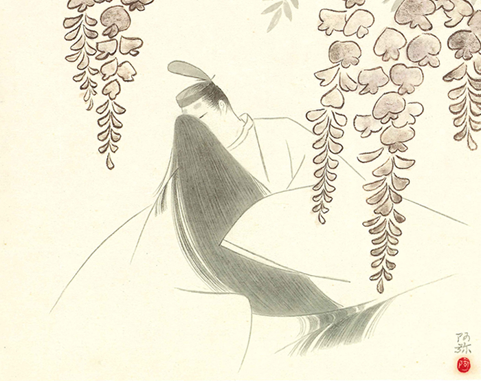 四月の初め、内大臣(頭の中将)は、藤花(とうか)の宴に夕霧の若君をお招きになります。 ついに雲居雁(くもいのかり)の姫君との結婚をお許しになったのです。 六年ぶりの再会を果たしたふたりは、ようやく結ばれます。