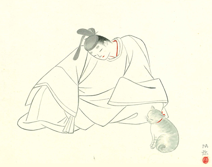 猫がひどく鳴くので、振り返られた女三の宮の顔つき、身のこなしなどは、まことにおっとりとしていて、若くかわらしい方だと、すぐに察せられました。