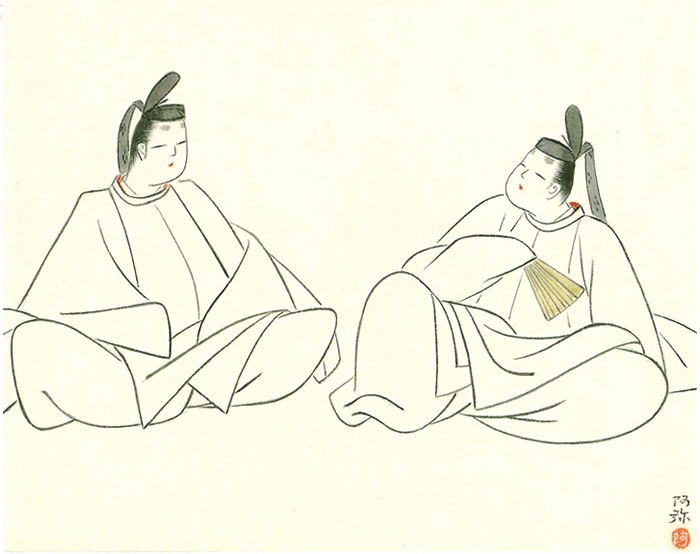 かの光源氏の大殿がお隠れになって、八年の歳月が過ぎました。 その後継者に当たるような方はご一族にも見あたらず、わずかに、匂宮(におうのみや)さまと薫(かおる)さまのお二人だけが、 その面影を受け継ぐかのようでございました。 薫さまは生まれながらに不思議な芳香を身に備え、匂宮さまも負けじと香をたきしめたため、 「匂う兵部卿、薫る中将」と並び称されます。 夕霧の右大臣さまには姫君が大勢おありで、匂宮さまか薫さまのどちらかに娶(めあわ)せたいとお考えです。 しかし、源氏の大殿の色好みを受け継いだ匂宮さまは、冷泉院の女一の宮さまにひそかに思いを募らせ、お仕着せの縁談には気が進まぬご様子です。 薫さまも、若くしてご出家したお母さまと、幼い頃に耳にしたうわさ話に、自らのご出生に疑惑をお抱きでした。 ご栄達も身に染まず、仏門の生活にあこがれ、こちらもまだお一人のままなのです。
