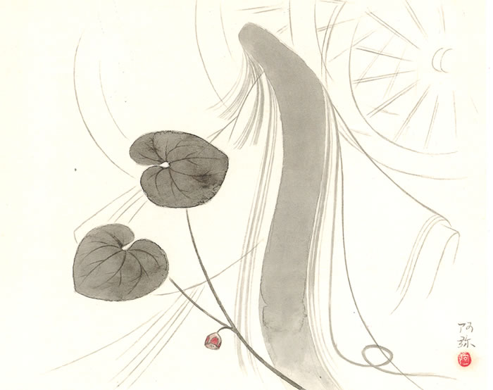 この車争いの一件以来、御息所(みやすどころ)は屈辱感に人知れず物思いを深めていきました。 一方、出産を控えた葵の上は、物の怪に苦しめられ、お命さえ危ぶまれます。ある時、病床から不意に源氏の君に懐かしげに語りかけてきたその声やしぐさは、葵の上ではなく、御息所とうり二つでした。源氏の君は物の怪の正体が御息所の生霊(いきすだま)と知り、衝撃を受けます。 葵の上は若君(夕霧)をお産みになると、すぐに亡くなってしまいます。 ご懐妊を機に、葵の上との心の隔てもなくなり、ようやく夫婦らしい愛情も芽生えたというのに・・。 源氏の君はその死を悼み嘆きます。 喪が明けた源氏の君は、すっかり大人びた紫の姫君と新枕を交わすの ですが、お兄様のようにお慕い申しあげたのに、と姫君は裏切られた思いです。
