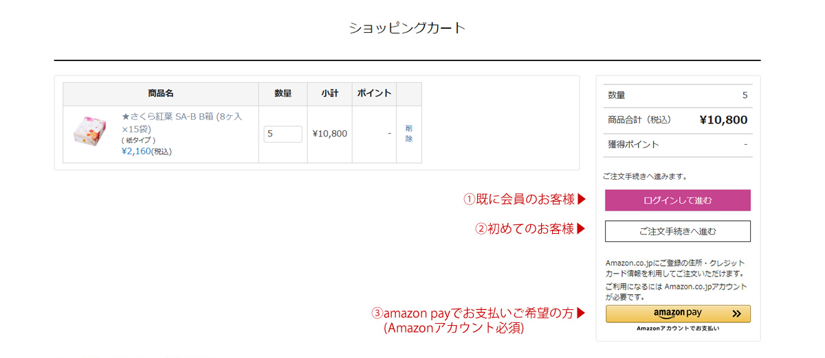 ⑦お支払い金額:金額をご確認いただき問題なければ、「注文を確定する」ボタンを押して下さい。以上でご注文完了となります。